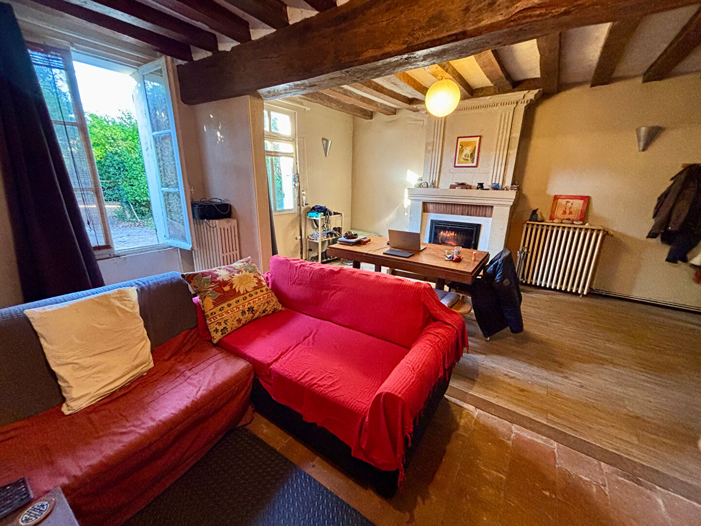 Chez I WANT IMMO - Sympathique maison de marinier comprenant une chaleureuse pièce de vie avec insert, tomettes et belles poutres, salle d'eau avec wc, cuisine et véranda attenante.